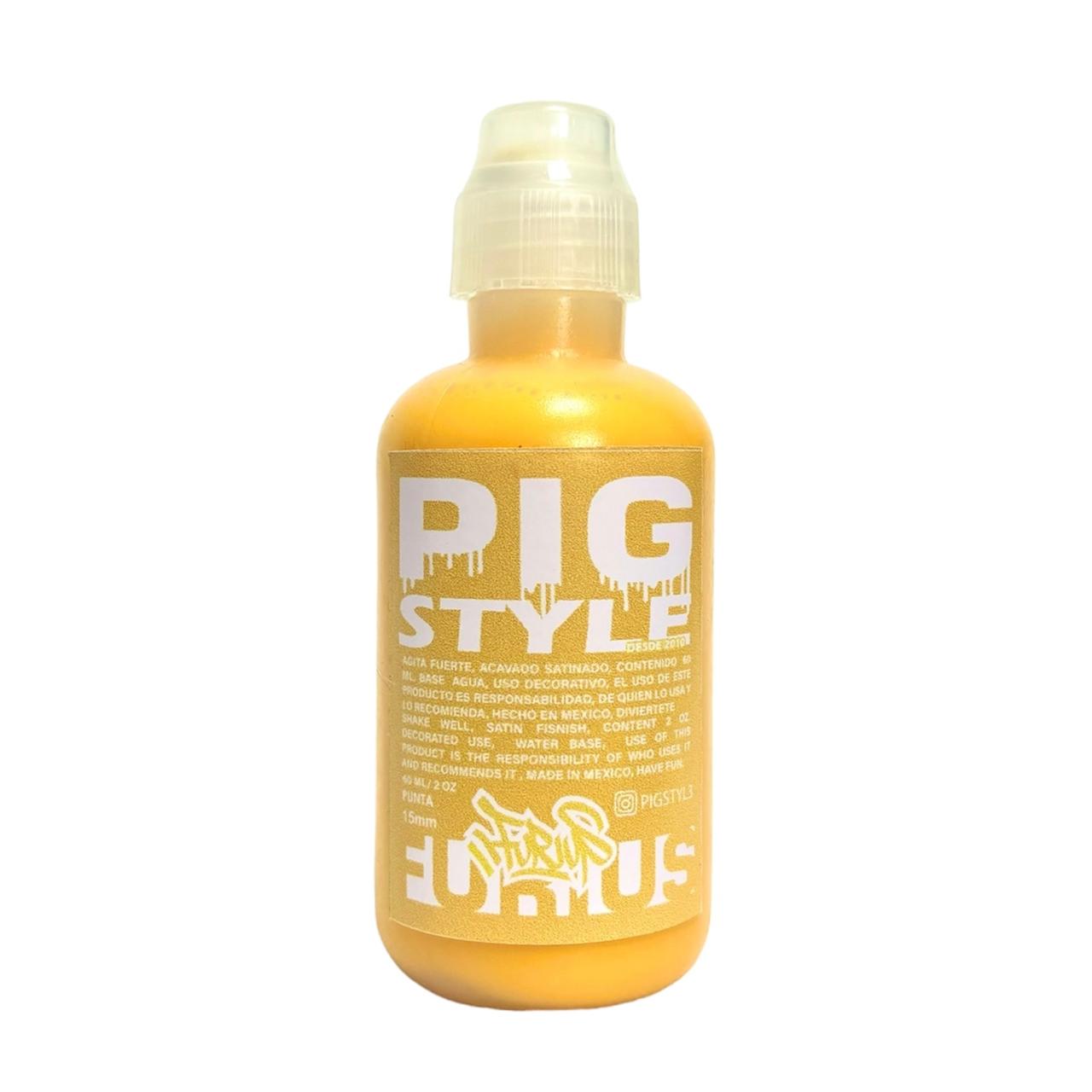 The stroke is round, quick, and fluid, and can be achieved by pressing down on the marker's body. The Pig Style marker allows you to create a "dripping" or dripping effect.