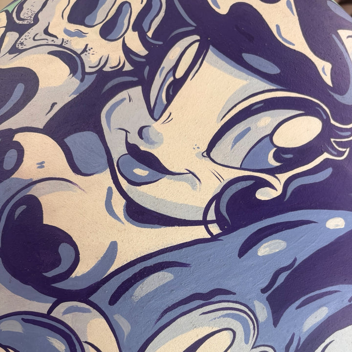 Esta pieza formó parte de exhibición, por lo que presenta detalles estéticos menores propios del montaje y la manipulación en espacio expositivo (marcas leves visibles únicamente a corta distancia). Por este motivo, cuenta con un descuento especial, manteniendo intacto su valor artístico, su intervención completa y su carácter coleccionable.