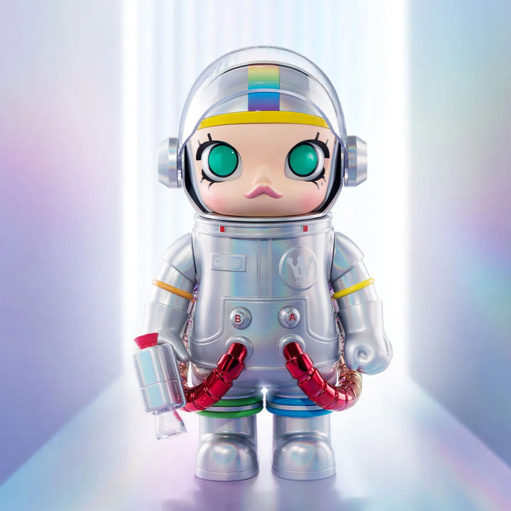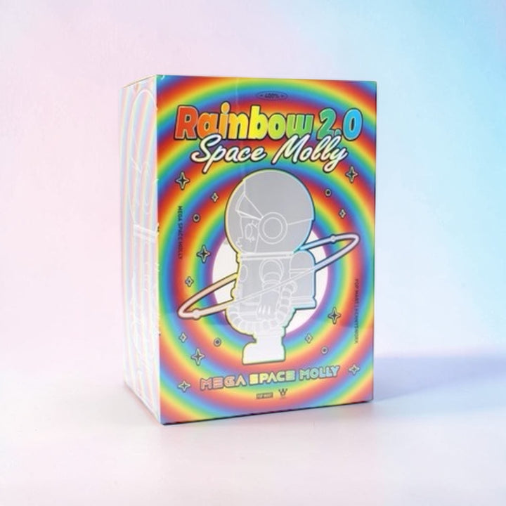 MEGA SPACE MOLLY 400% Rainbow 2.0 es una pieza que transforma el color en experiencia. Su acabado iridiscente tipo arcoíris refleja la luz desde cada ángulo, creando un efecto dinámico que cambia según el entorno y la perspectiva.