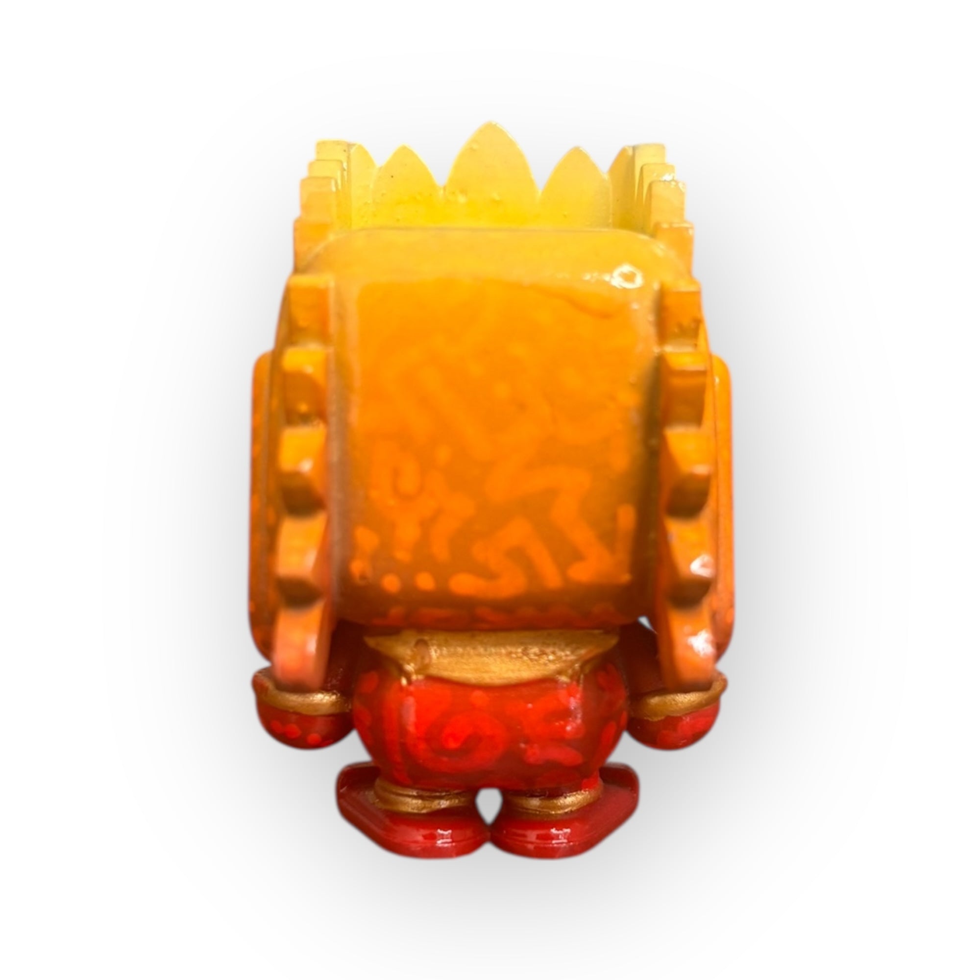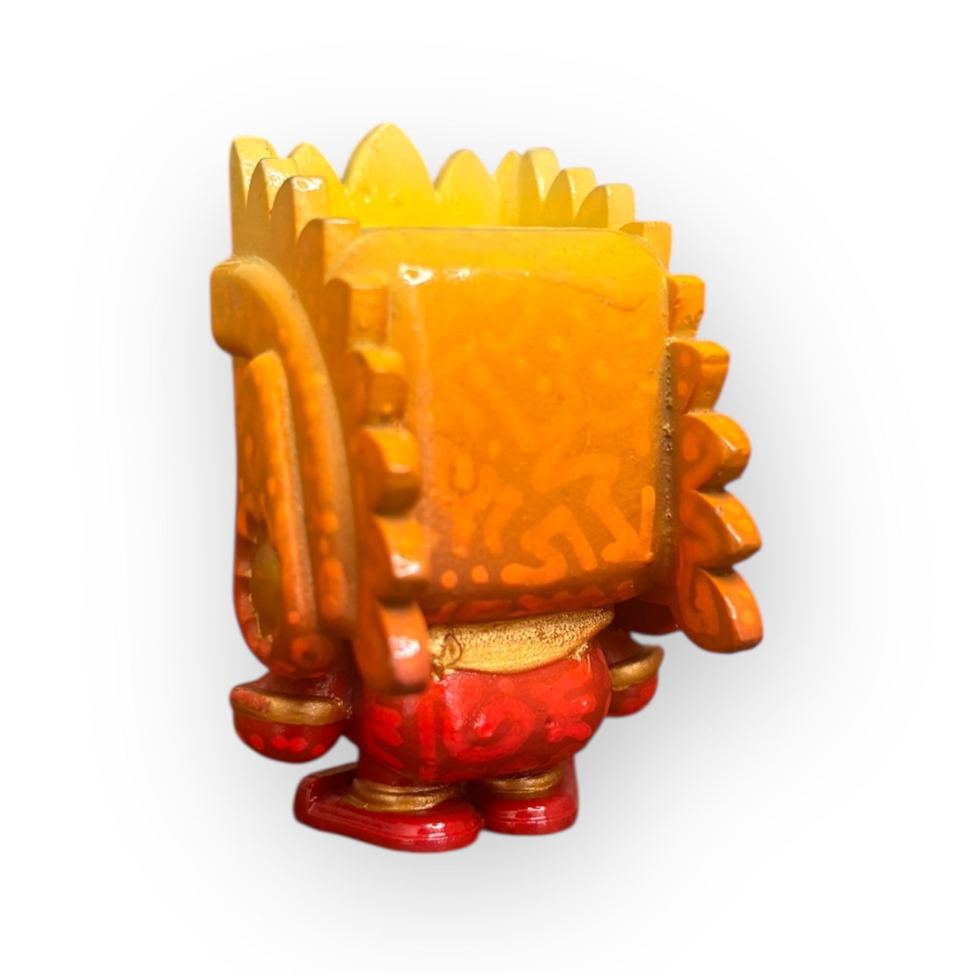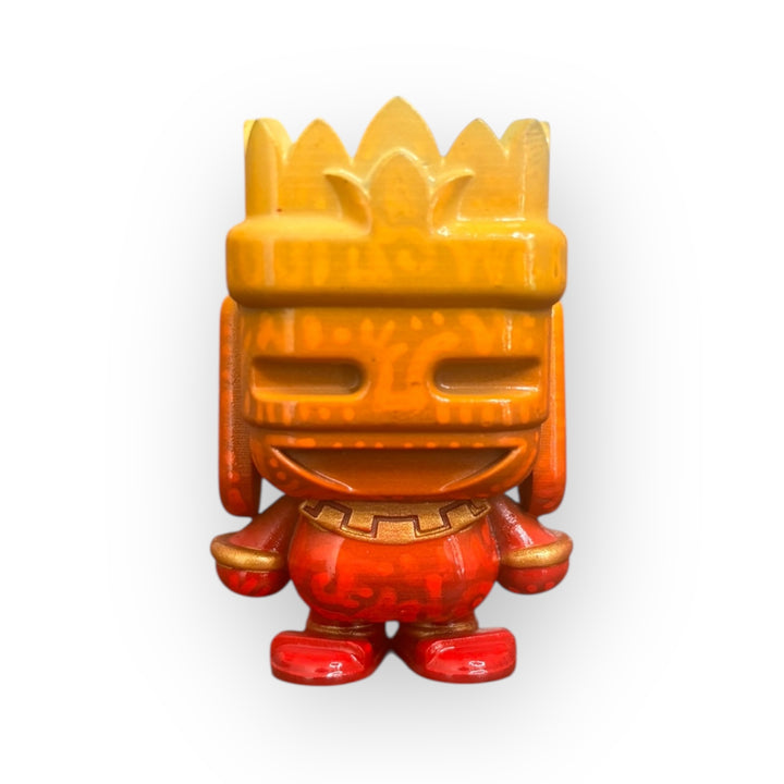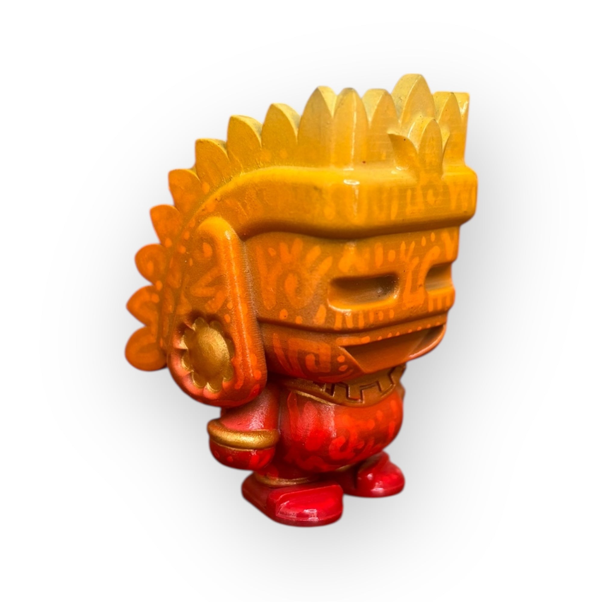 Este Huitzilopochtli de 5 cm es una pieza 1 de 1 creada por ROGO Minis, reinterpretando al dios guerrero a través de degradados artesanales en tonos naranja y rojo que transmiten fuego, movimiento y energía solar.