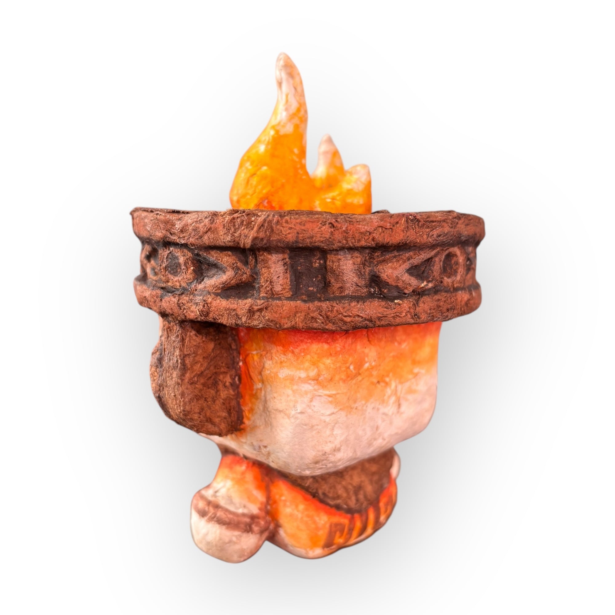 Interpretación de Huehuetéotl, dios del fuego y el tiempo, trabajada íntegramente en papel amate artesanal.